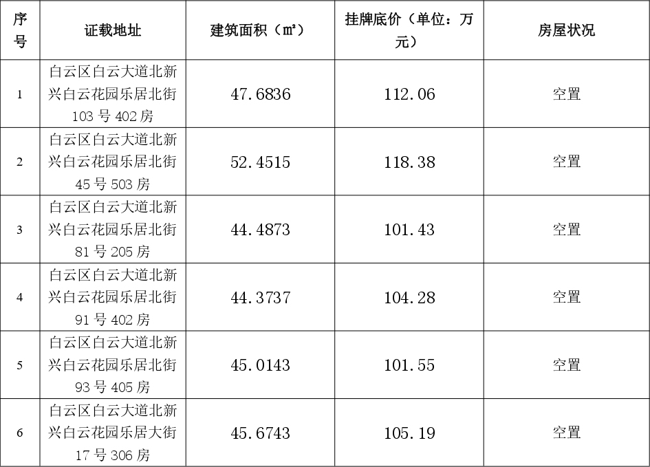 项目一: 转让白云区新兴白云花园乐居北街103号402房等6套住宅
