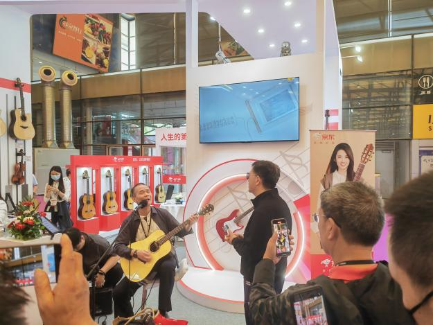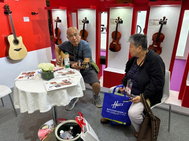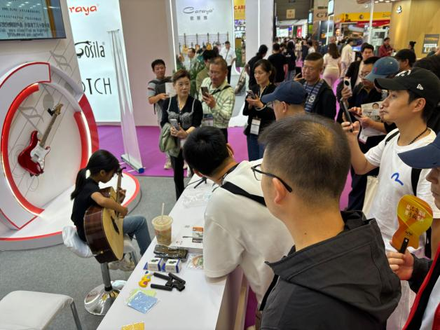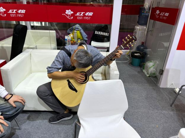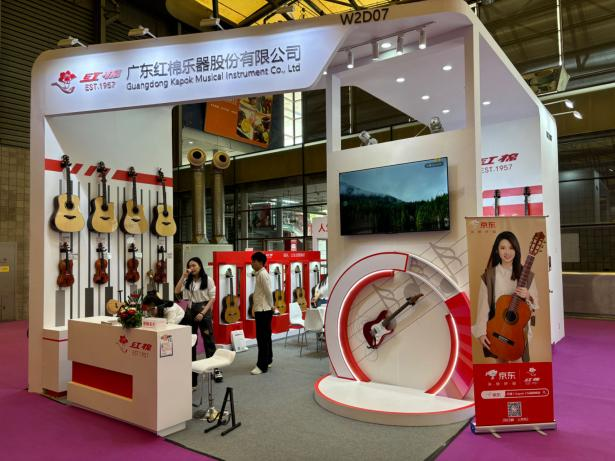 广东红棉作为拥有60多年历史的国内乐器先行者,为本次参展精心筹备布置,突出“人生第一把吉他——红棉”主题,仿佛在诉说岁月的故事,唤起人们的“红棉回忆”。现场不少参观者情不自禁拿起红棉吉他、提琴等乐器弹奏,那饱满的音色和共鸣让人陶醉。一位音乐爱好者表示,红棉吉他是他人生第一把吉他,让他学到了很多关于乐器的知识,拥有很多美好的回忆。这次红棉乐器的产品展示,体现了国内乐器的发展和进步。