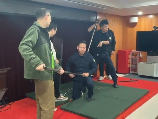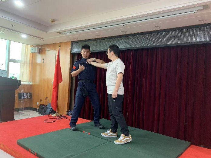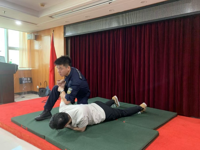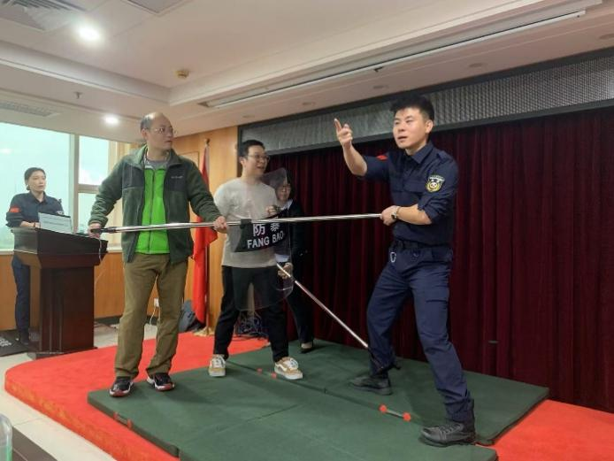本次培训邀请具有多年丰富安防布控经验的专职教官详细讲解常见突发事件的类型、特点和处理方式,重点介绍应急处置流程、应对技巧以及钢叉、盾牌、防暴背心等常用装备的使用方法,明确发生突发事件时,员工“1分钟自救、3分钟互救、5分钟增援到位”的应急处置要领,随后开展模拟持刀闯入办公场所极端事件的实操演练。